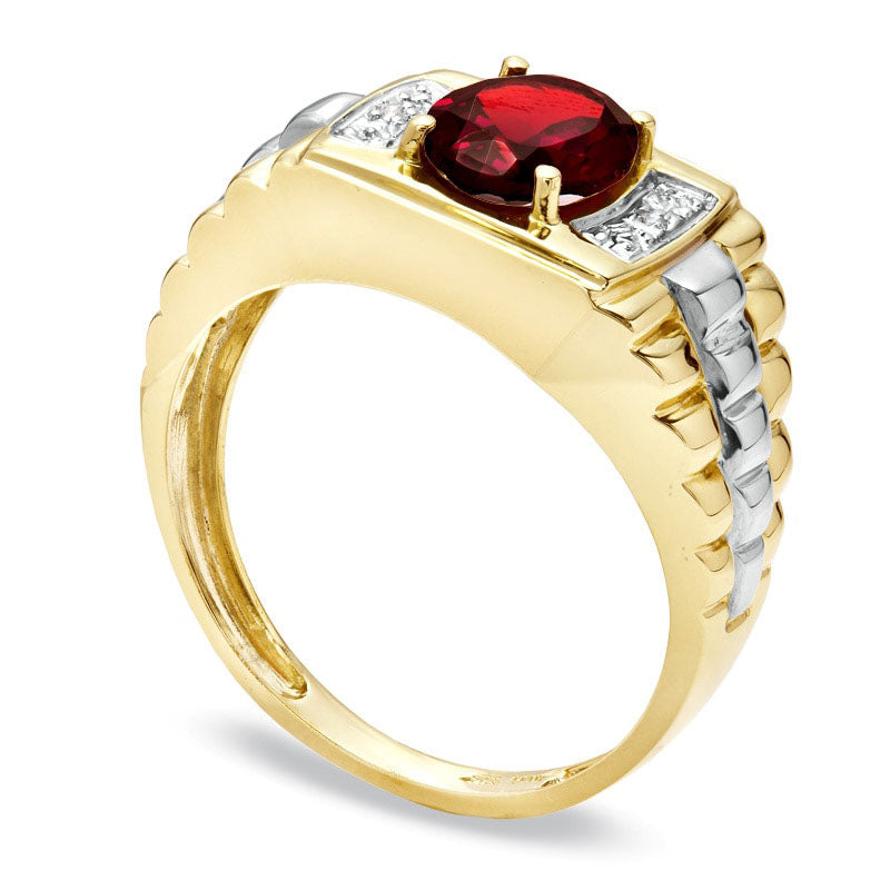 Men's Oval Garnet and Natural Diamond Accent Ring in Solid 10K Yellow Gold