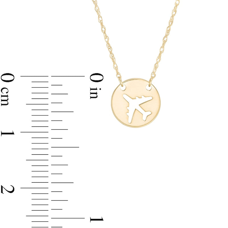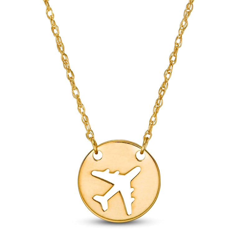 Mini Cut-Out Airplane Disc Necklace in 14K Gold