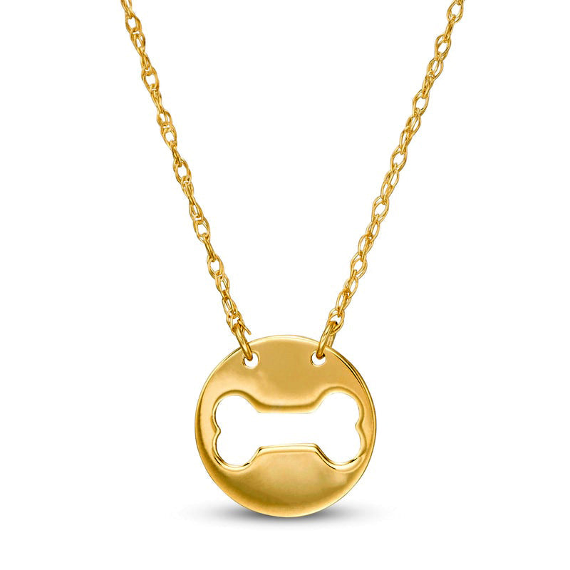 Mini Cut-Out Dog Bone Disc Necklace in 14K Gold