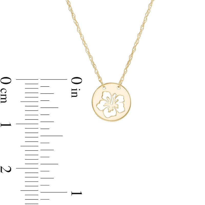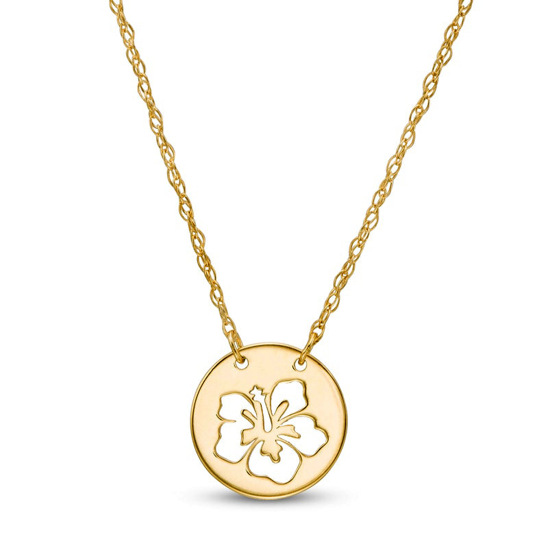Mini Cut-Out Hibiscus Disc Necklace in 14K Gold