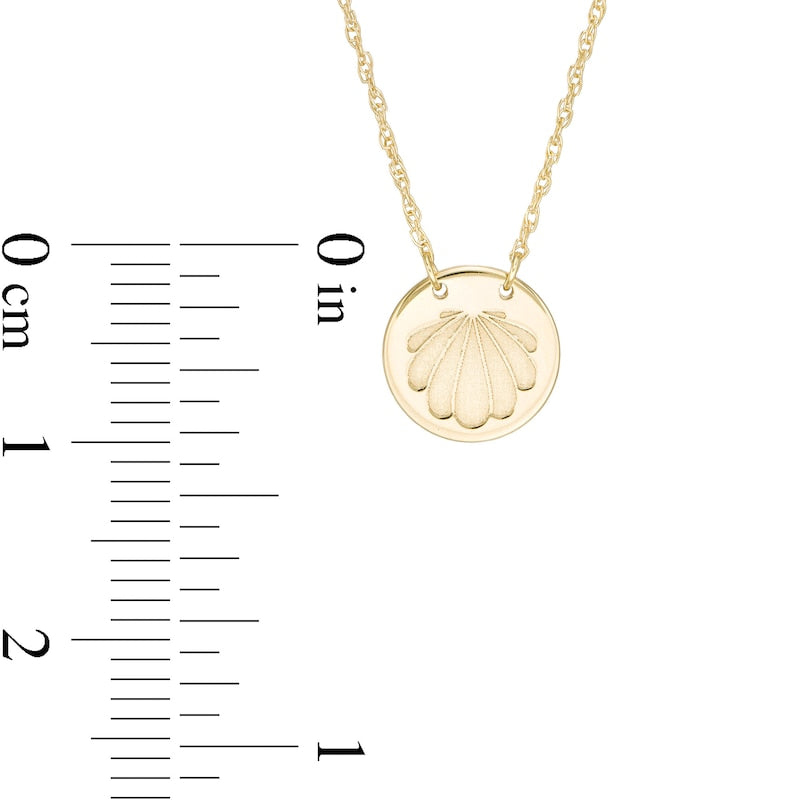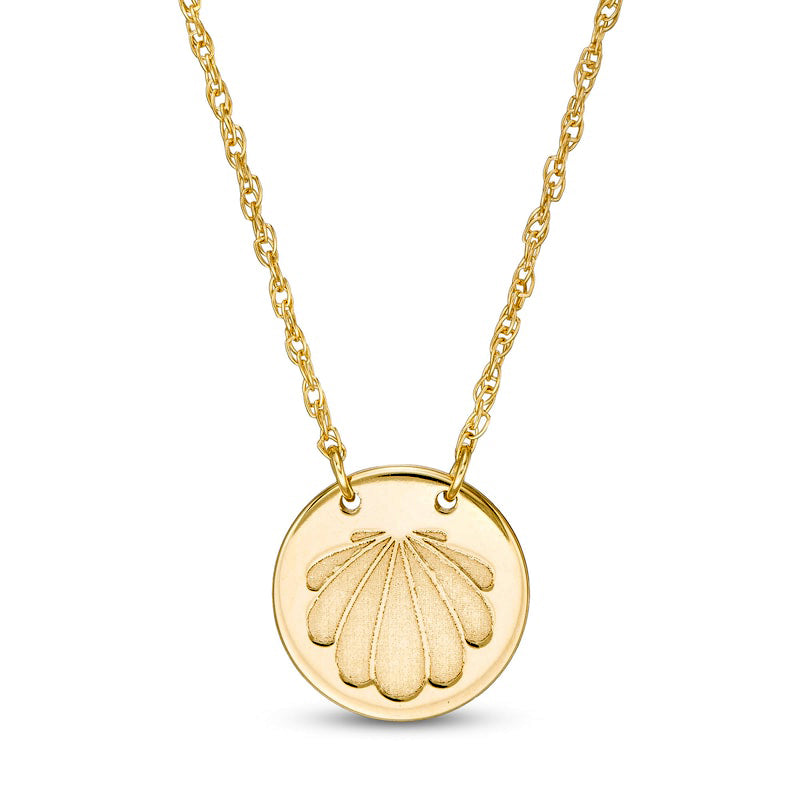 Mini Scallop Seashell Stamped Disc Necklace in 14K Gold