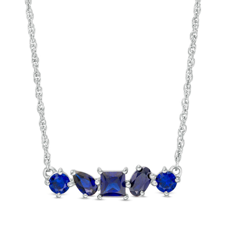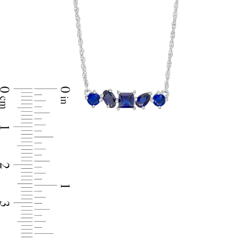Multi-Shape Lab-Created Blue Sapphire Five Stone Bar Necklace in Sterling Silver