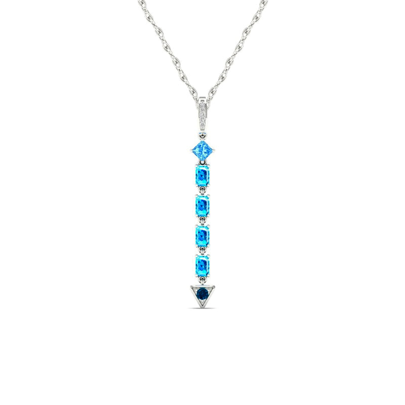 Multi-Shaped Blue Topaz and Natural Diamond Accent Abstract Arrow Pendant in 10K White Gold