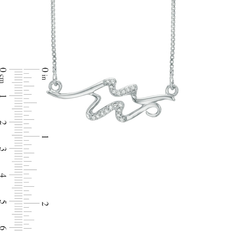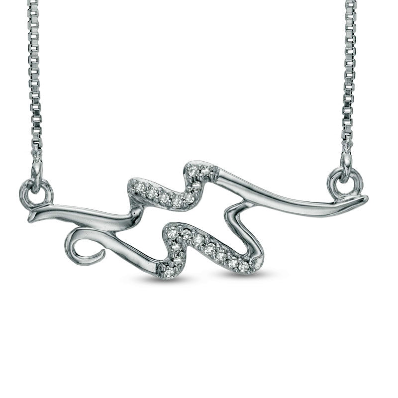 Natural Diamond Accent Abstract Aquarius Zodiac Sign Necklace in Sterling Silver