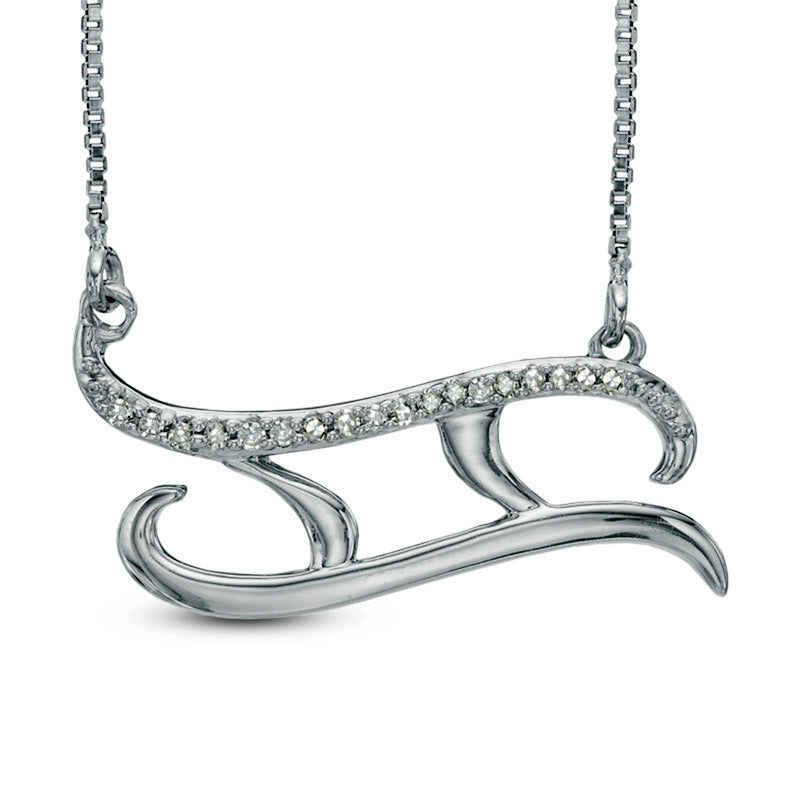 Natural Diamond Accent Abstract Gemini Zodiac Sign Necklace in Sterling Silver
