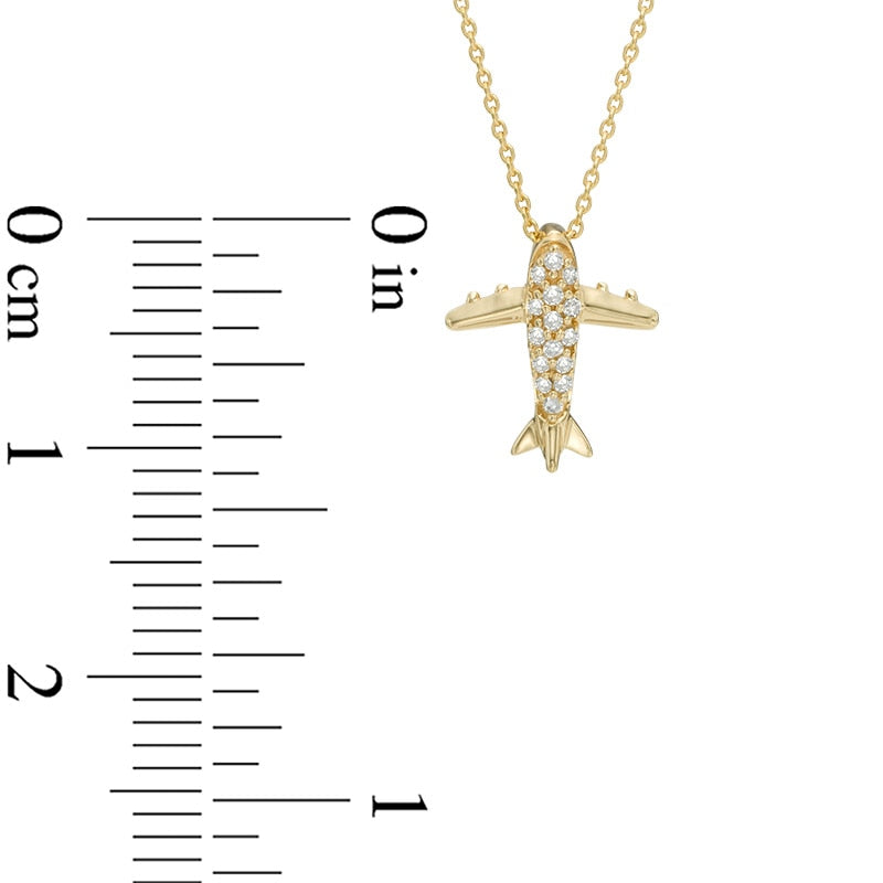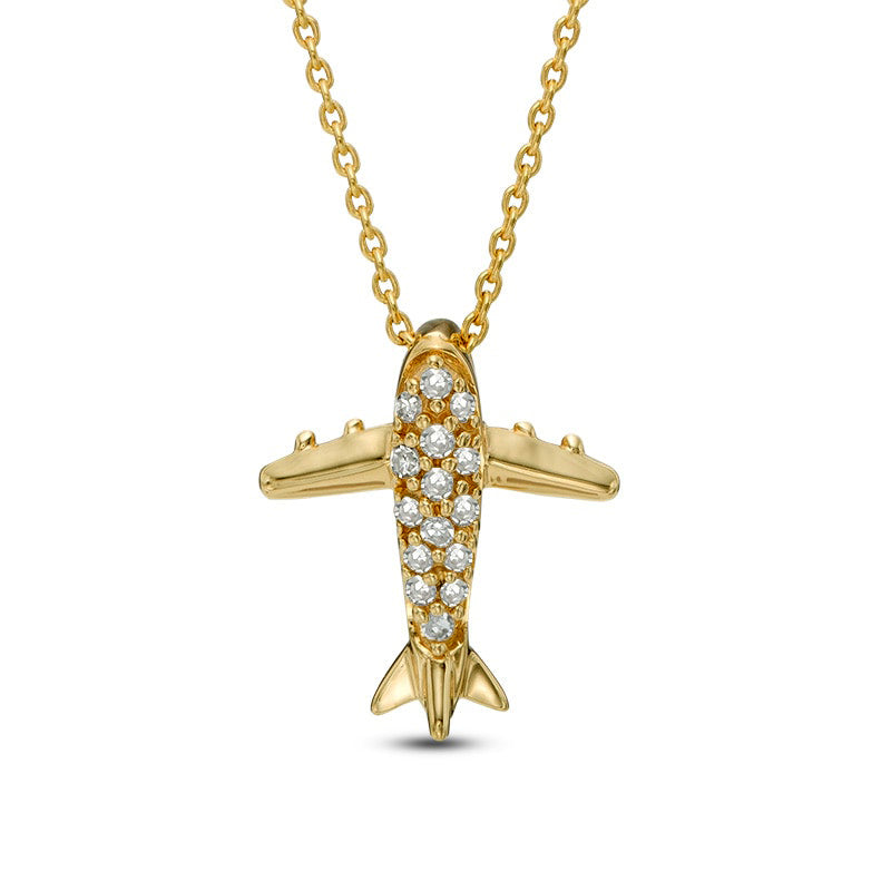 Natural Diamond Accent Airplane Pendant in 10K Yellow Gold