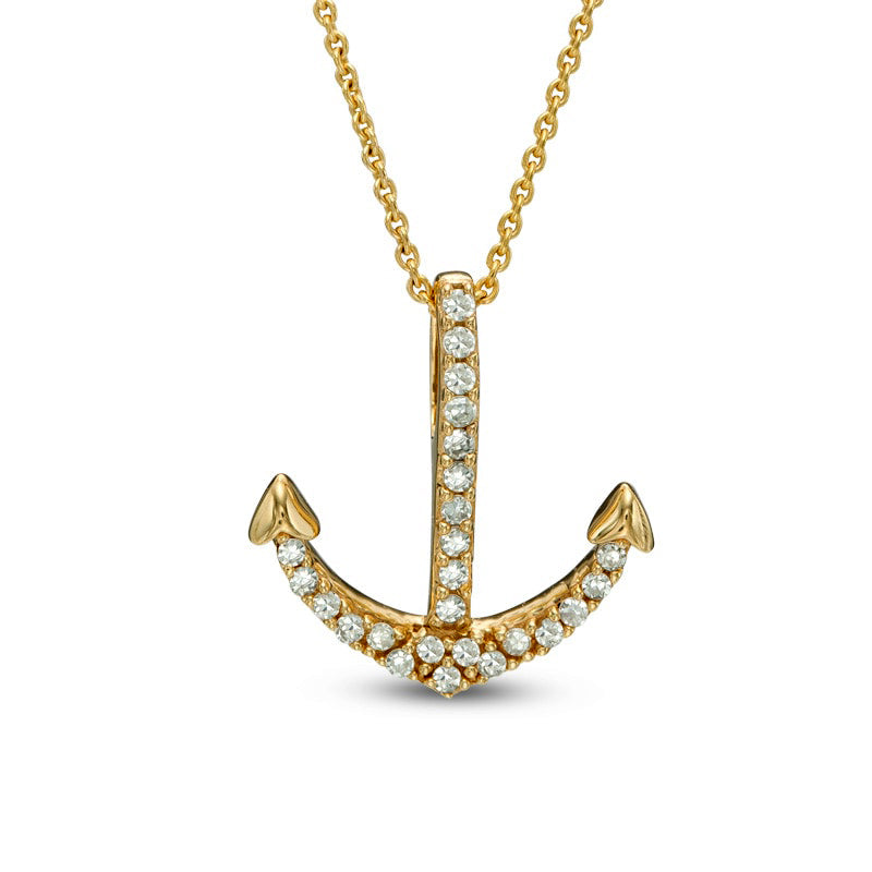 Natural Diamond Accent Anchor Pendant in 10K Yellow Gold