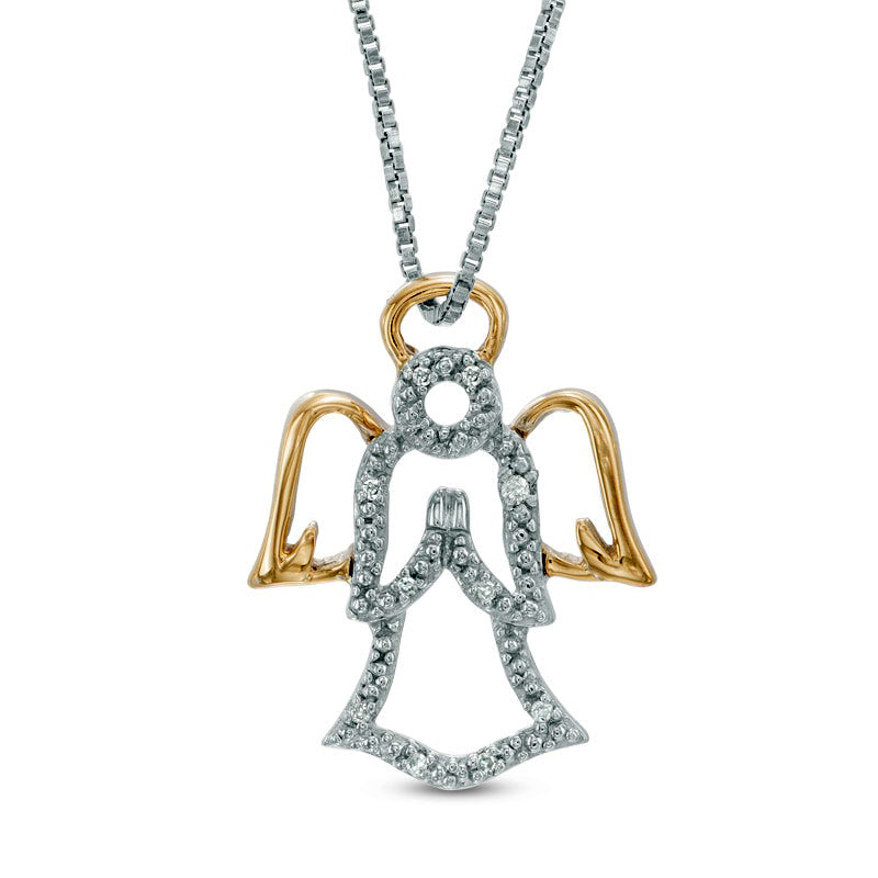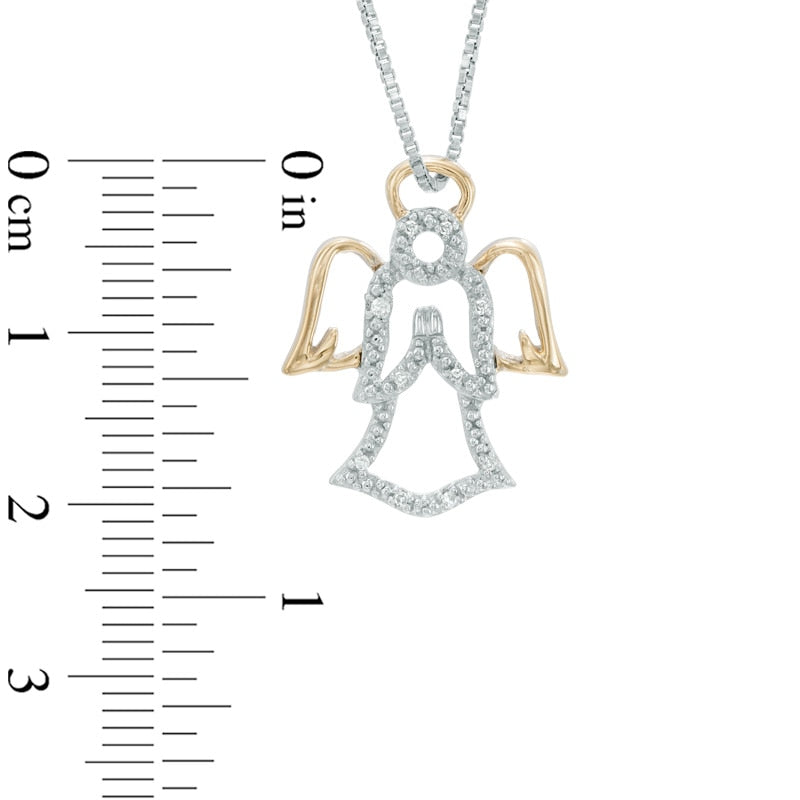 Natural Diamond Accent Angel Pendant in Sterling Silver and 14K Gold