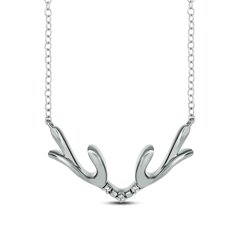 Natural Diamond Accent Antlers Necklace in Sterling Silver