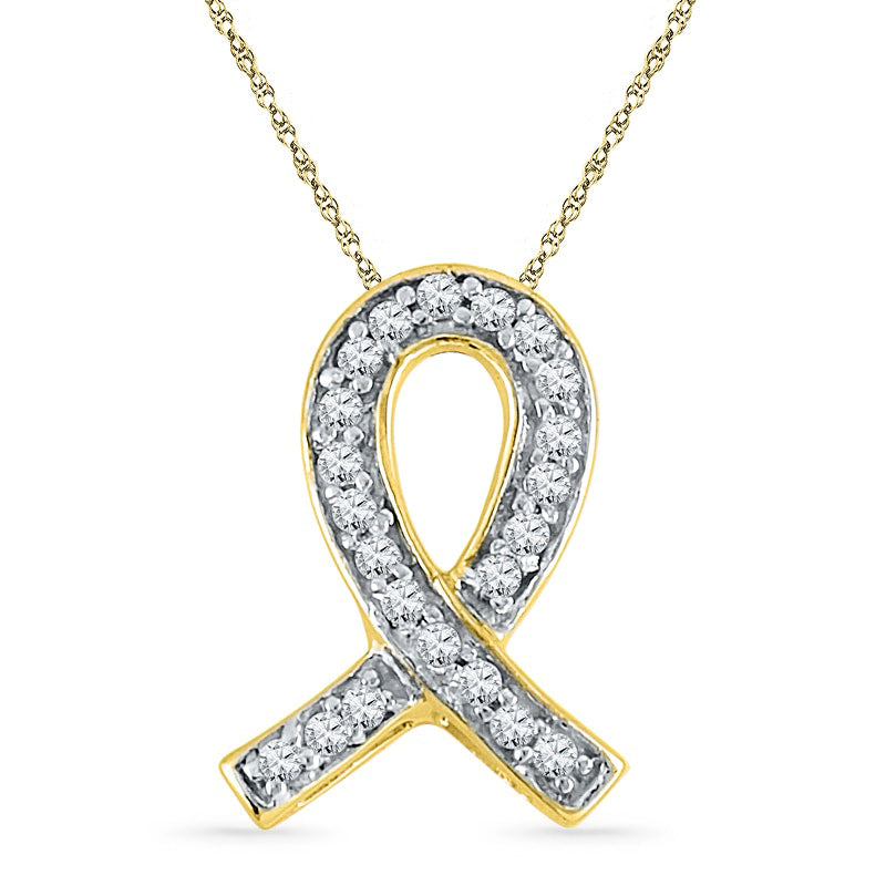 Natural Diamond Accent Awareness Ribbon Pendant in 10K Yellow Gold