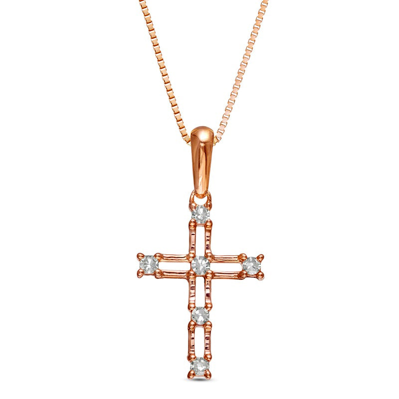 Natural Diamond Accent Bamboo Cross Pendant in 10K Rose Gold