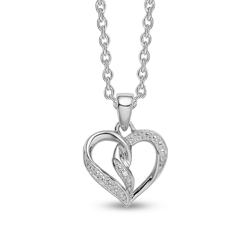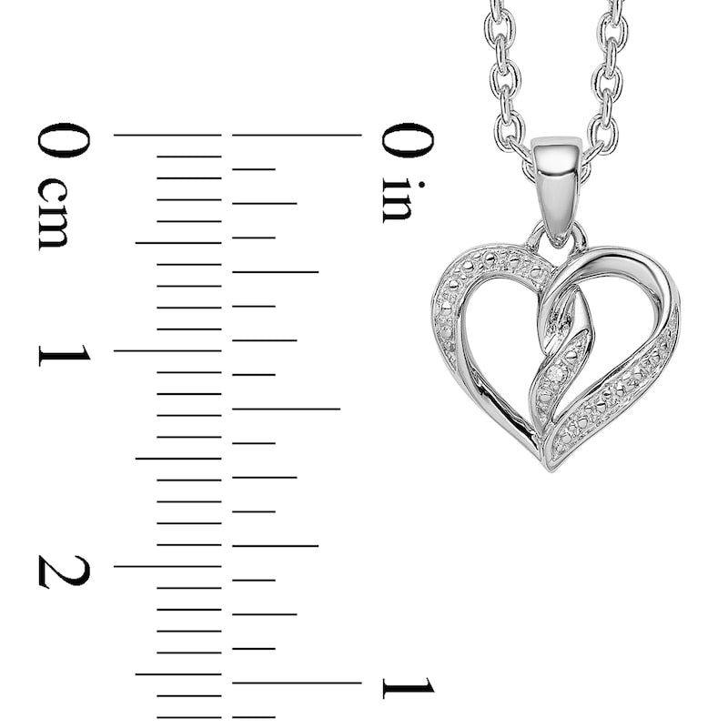 Natural Diamond Accent Beaded Entwined Half-and-Half Heart Pendant in Sterling Silver