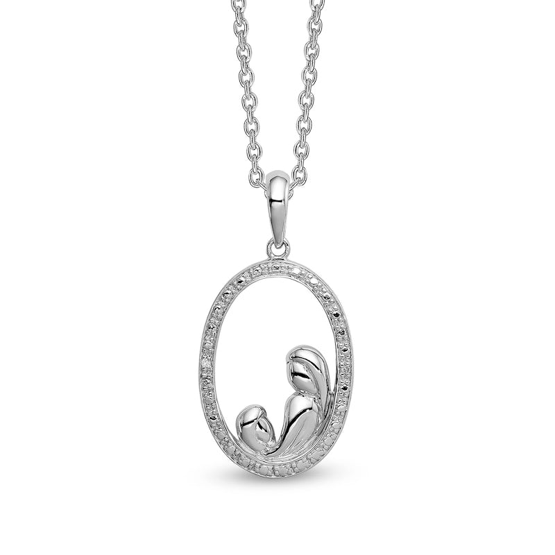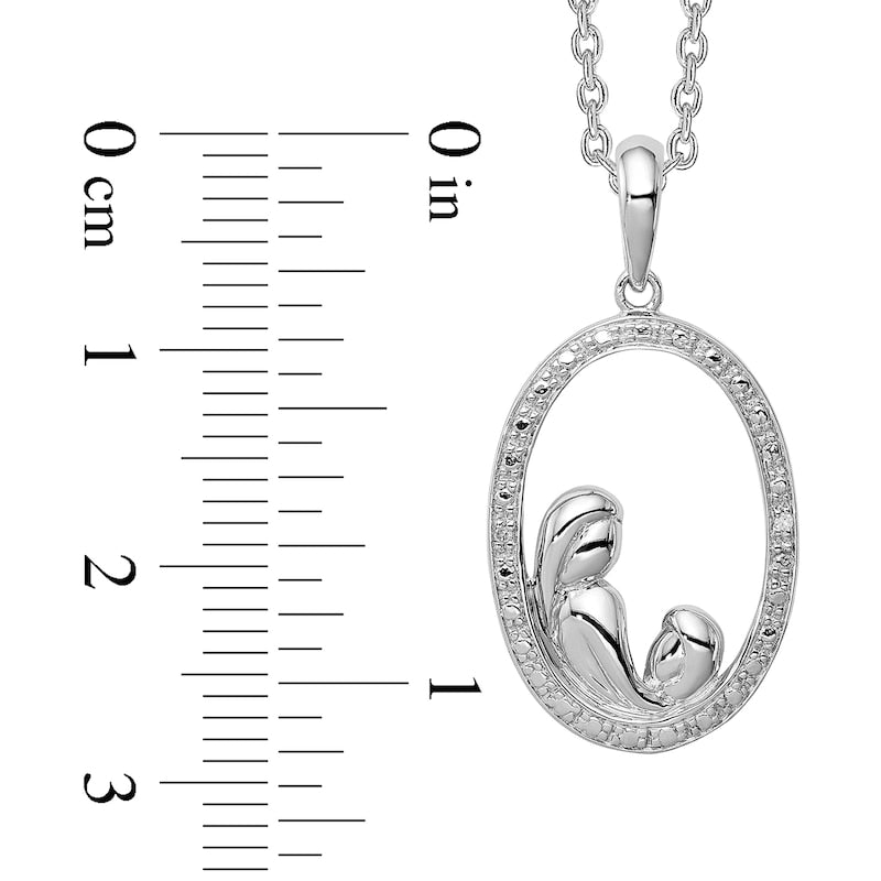 Natural Diamond Accent Beaded Motherly Love Oval Pendant in Sterling Silver
