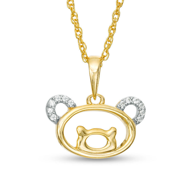 Natural Diamond Accent Bear Face Outline Pendant in 10K Yellow Gold