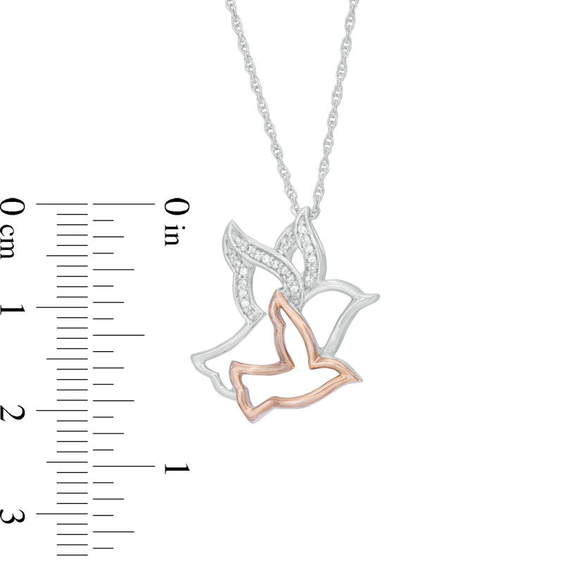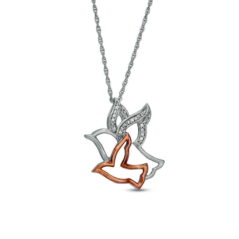 Natural Diamond Accent Birds Pendant in Sterling Silver and 10K Rose Gold