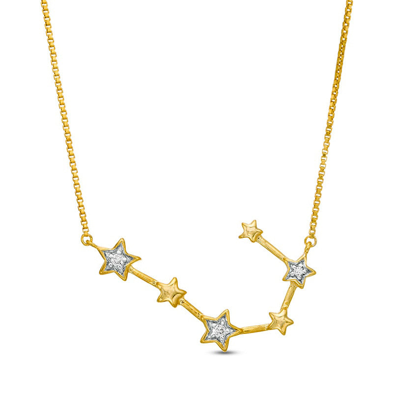 Natural Diamond Accent Cancer Constellation Necklace in Sterling Silver with 14K Gold Plate