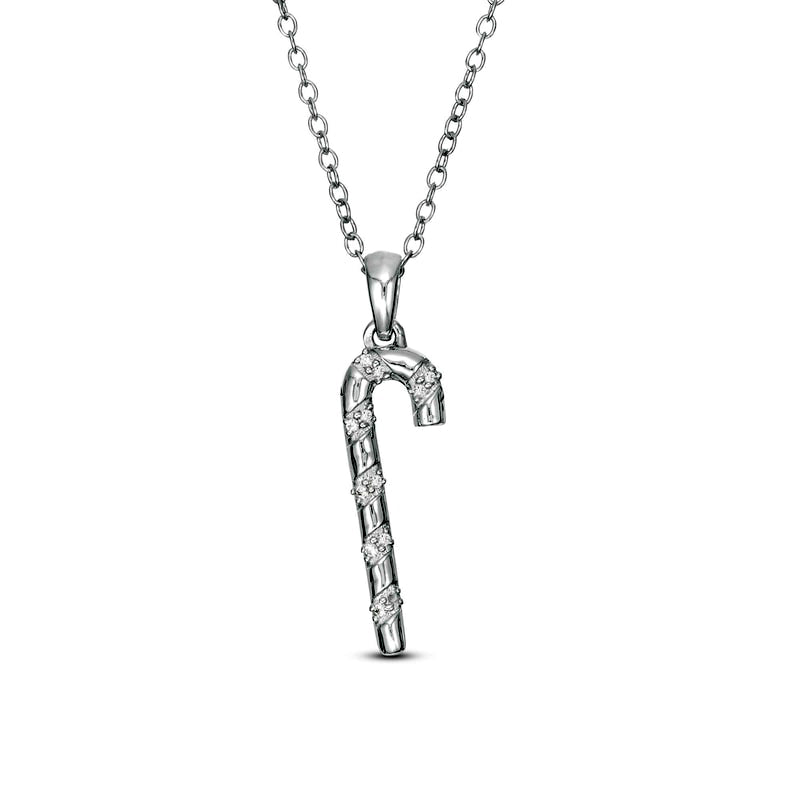 Natural Diamond Accent Candy Cane Pendant in Sterling Silver