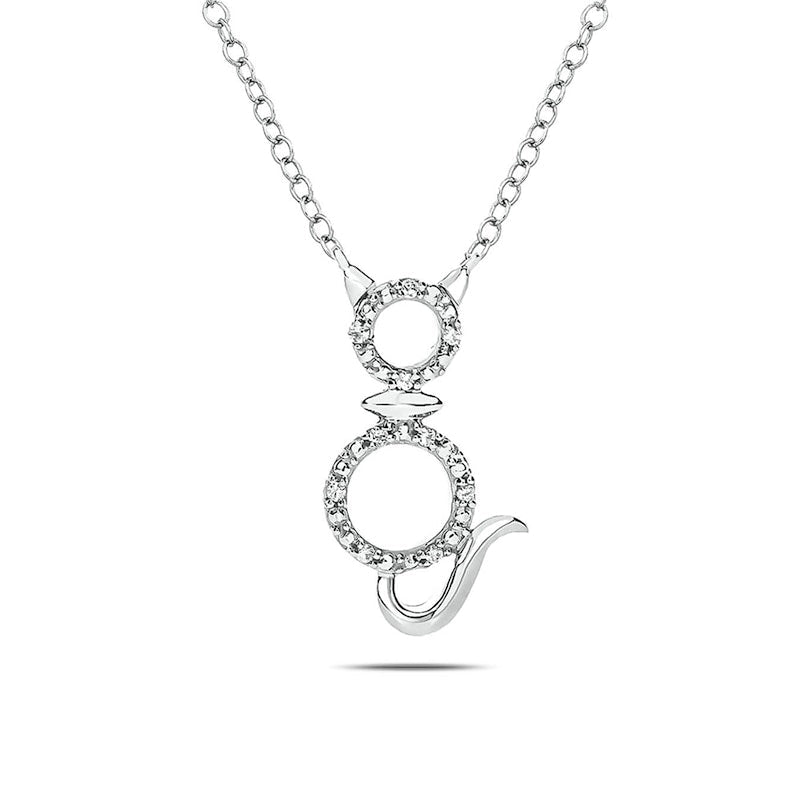 Natural Diamond Accent Cat Outline Necklace in Sterling Silver