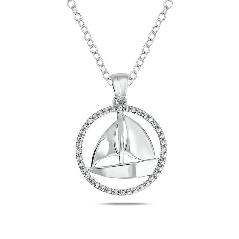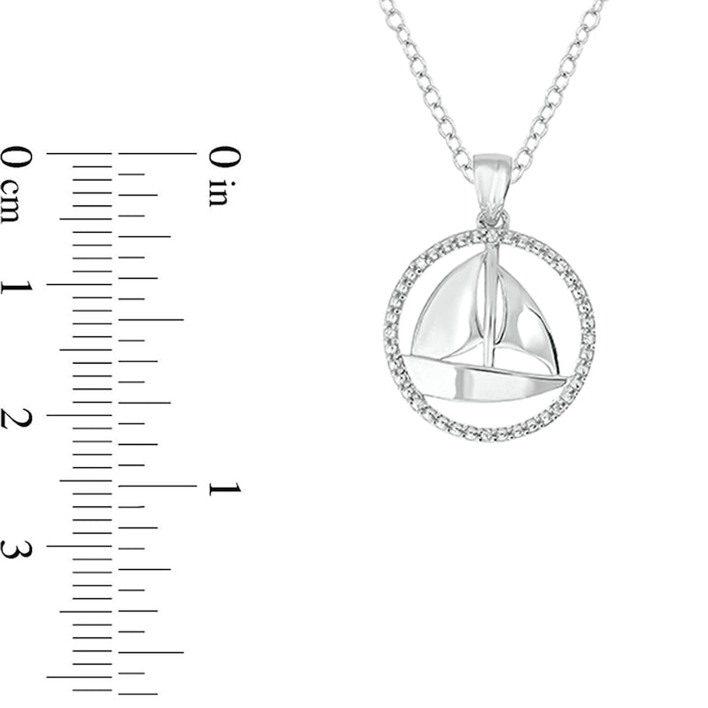 Natural Diamond Accent Circle Outline Sailboat Pendant in Sterling Silver