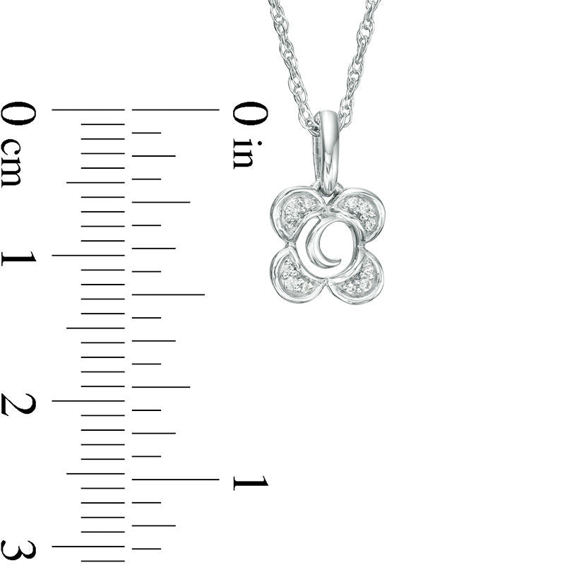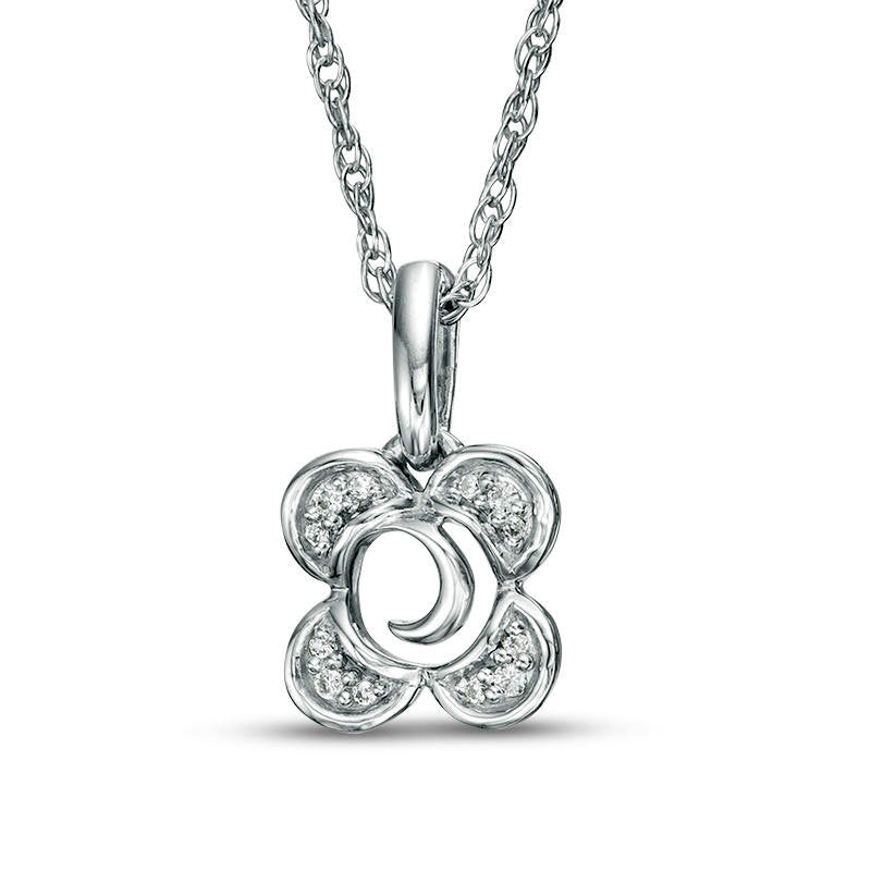 Natural Diamond Accent Crescent Moon center Flower Pendant in Sterling Silver