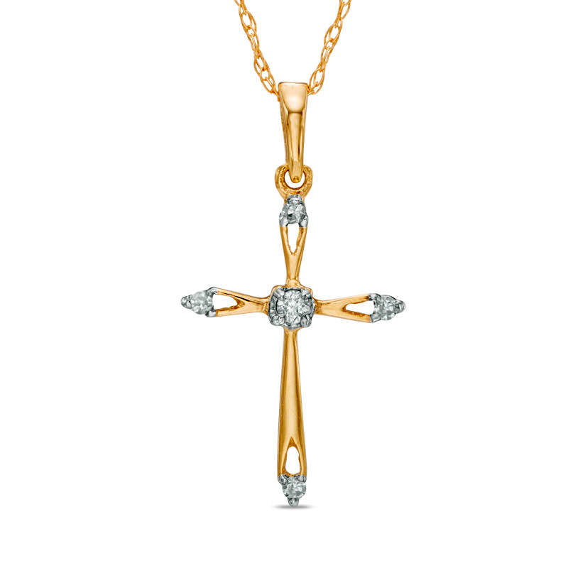 Natural Diamond Accent Cross Pendant in 10K Yellow Gold