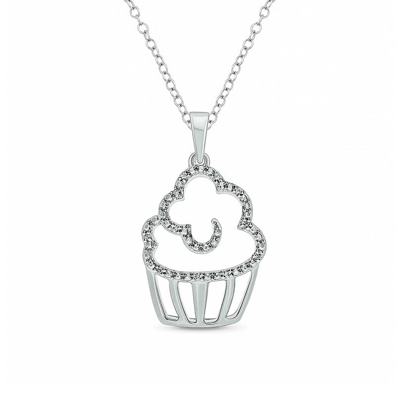 Natural Diamond Accent Cupcake Pendant in Sterling Silver