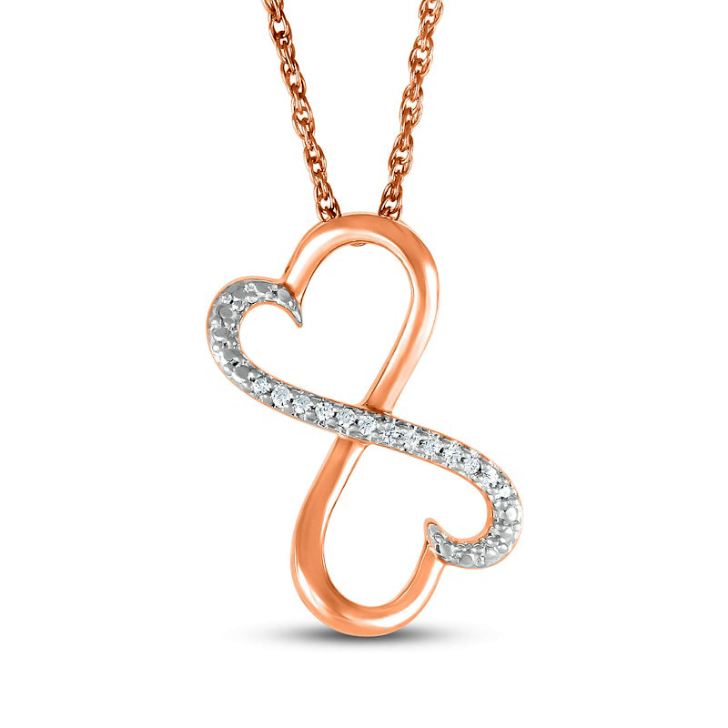 Natural Diamond Accent Double Heart Infinity Loop Pendant in 10K Rose Gold