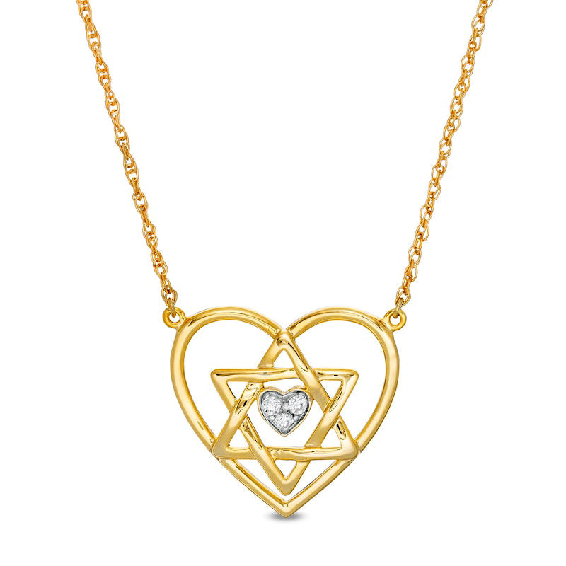 Natural Diamond Accent Double Heart with Star of David Necklace in 10K Yellow Gold