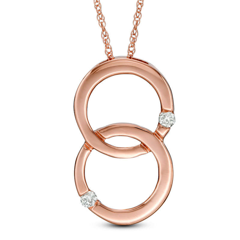 Natural Diamond Accent Double Interlocking Circles Pendant in 10K Rose Gold