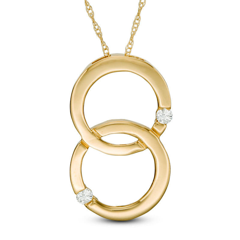 Natural Diamond Accent Double Interlocking Circles Pendant in 10K Yellow Gold