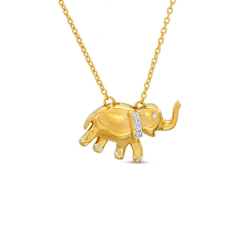 Natural Diamond Accent Elephant Pendant in Sterling Silver with 14K Gold Plate