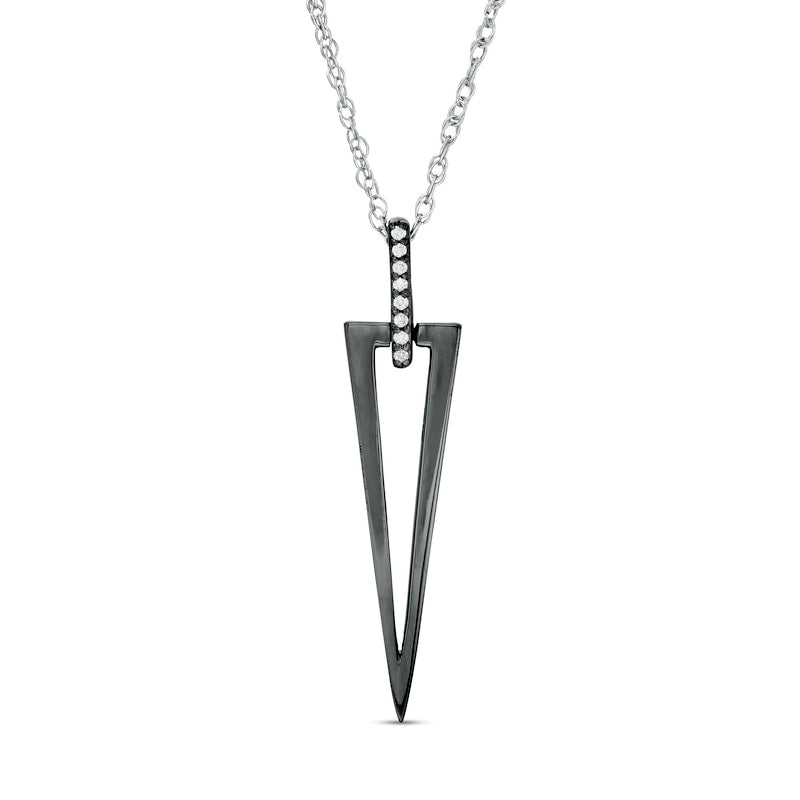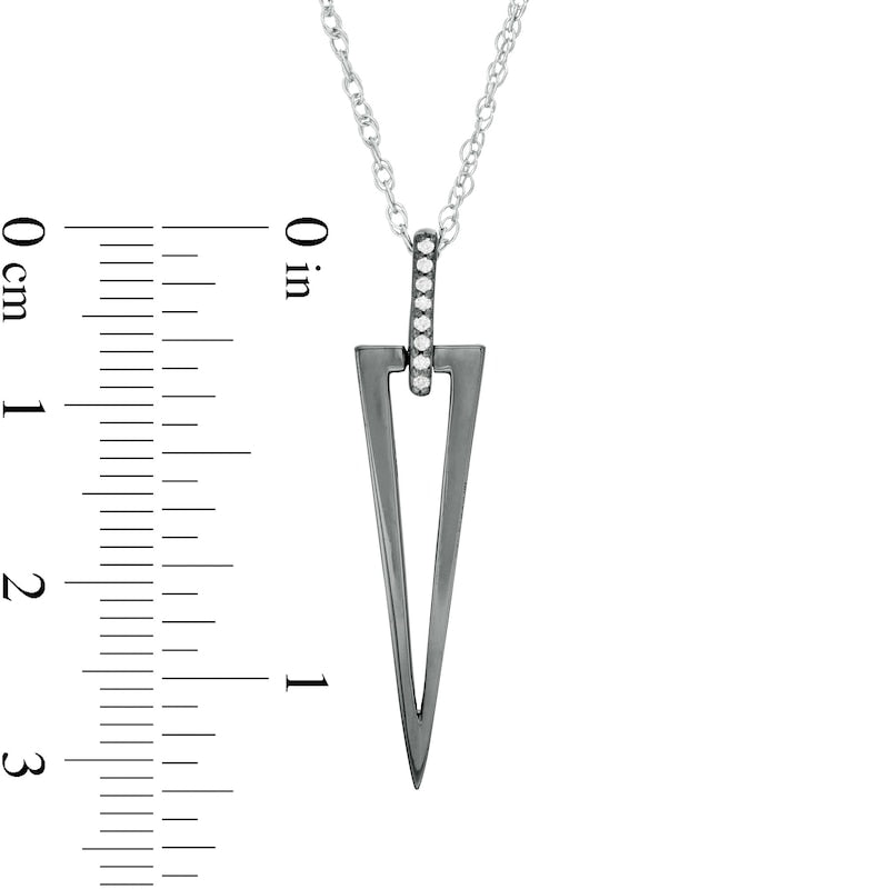 Natural Diamond Accent Elongated Triangle Outline Pendant in Sterling Silver and Black Rhodium