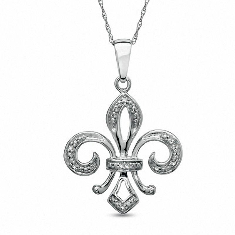 Natural Diamond Accent Fleur-de-Lis Pendant in 10K White Gold