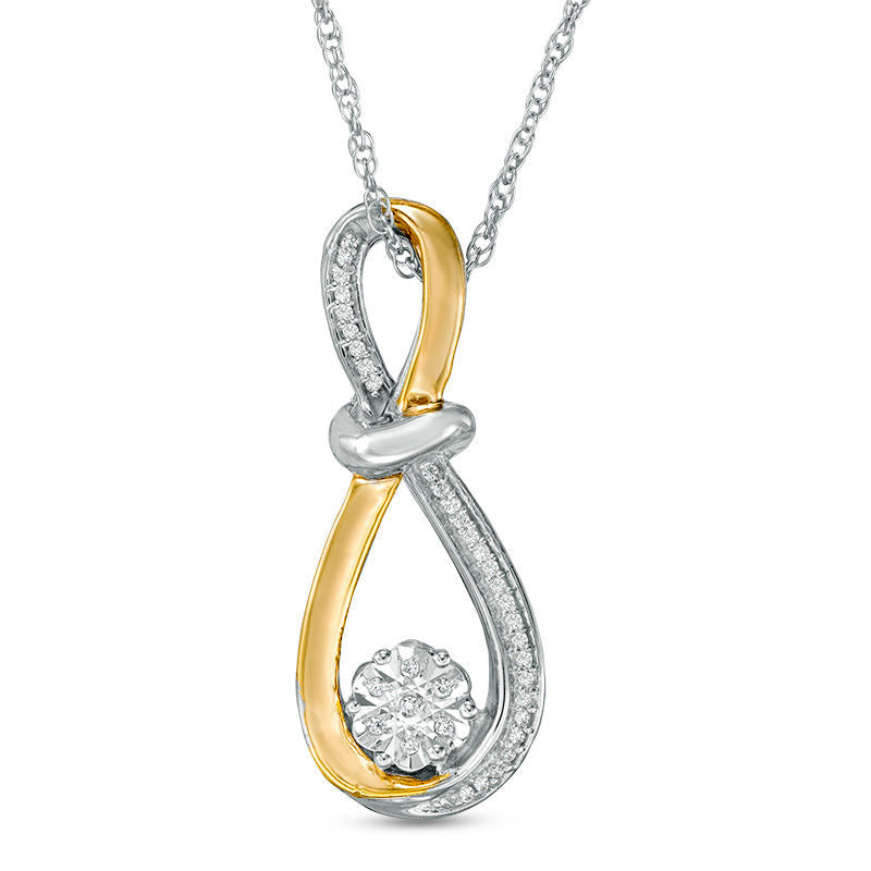Natural Diamond Accent Flower Composite Infinity Pendant in Sterling Silver and 10K Yellow Gold