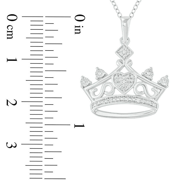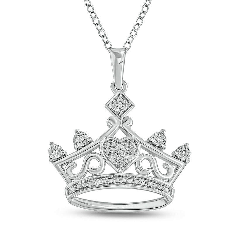 Natural Diamond Accent Heart Crown Pendant in Sterling Silver
