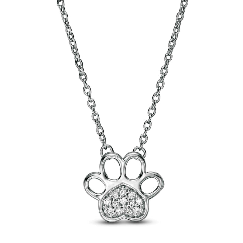 Natural Diamond Accent Heart Paw Print Necklace in 10K White Gold