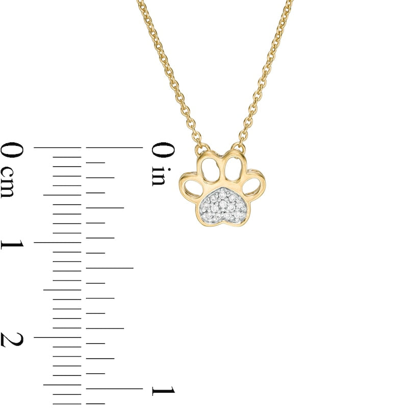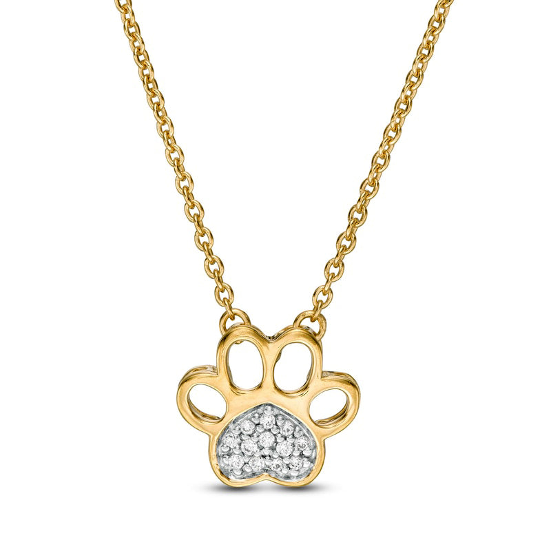 Natural Diamond Accent Heart Paw Print Necklace in 10K Yellow Gold