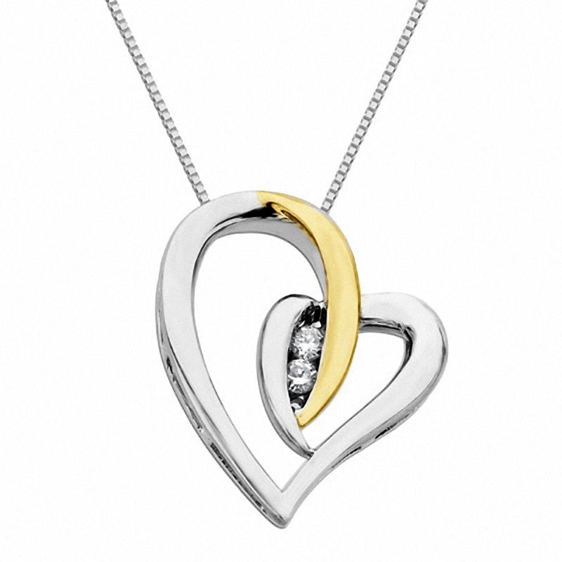 Natural Diamond Accent Heart-Shaped Pendant in Sterling Silver and 14K Gold