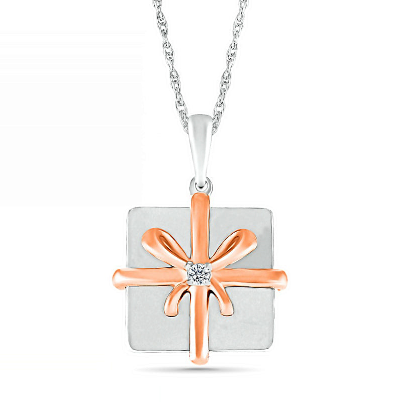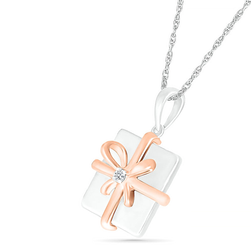 Natural Diamond Accent Holiday Gift Pendant in Sterling Silver and 14K Rose Gold Plate