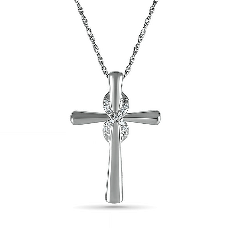 Natural Diamond Accent Infinity Cross Pendant in Sterling Silver
