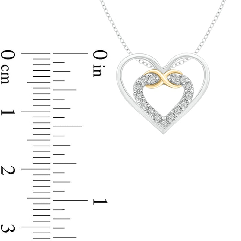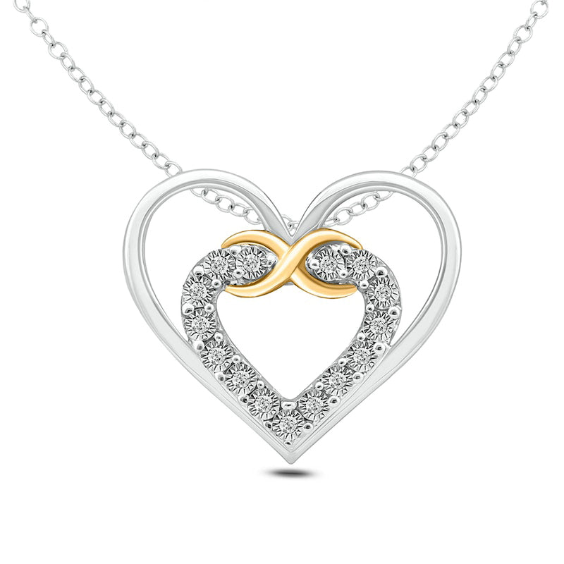 Natural Diamond Accent Infinity Double Heart Pendant in Sterling Silver and 10K Yellow Gold