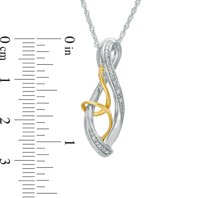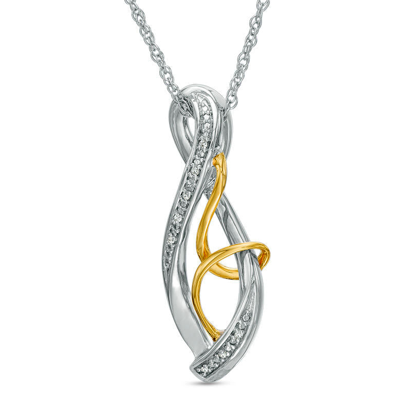 Natural Diamond Accent Infinity Swirl Pendant in Sterling Silver and 10K Yellow Gold