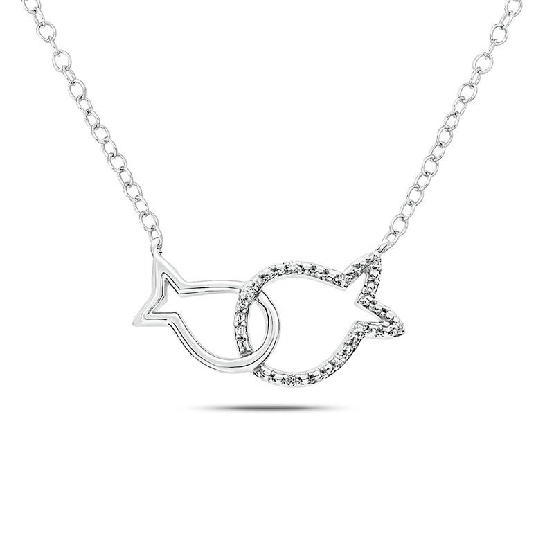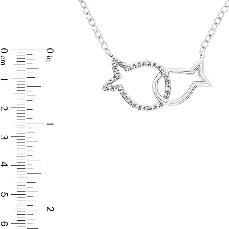 Natural Diamond Accent Interlocking Fish Necklace in Sterling Silver