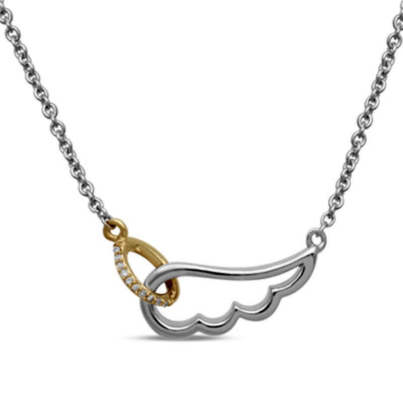 Natural Diamond Accent Interlocking Wing and Halo Necklace in Sterling Silver with 14K Gold Plate