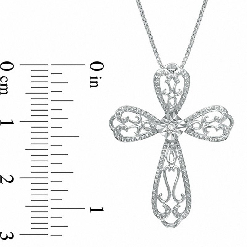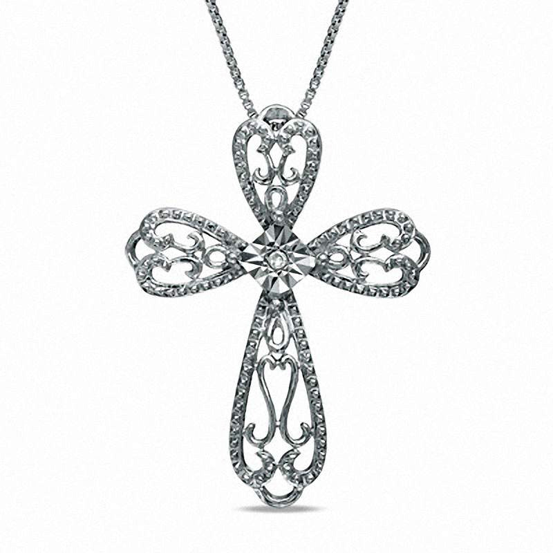 Natural Diamond Accent Lacy Cross Pendant in Sterling Silver