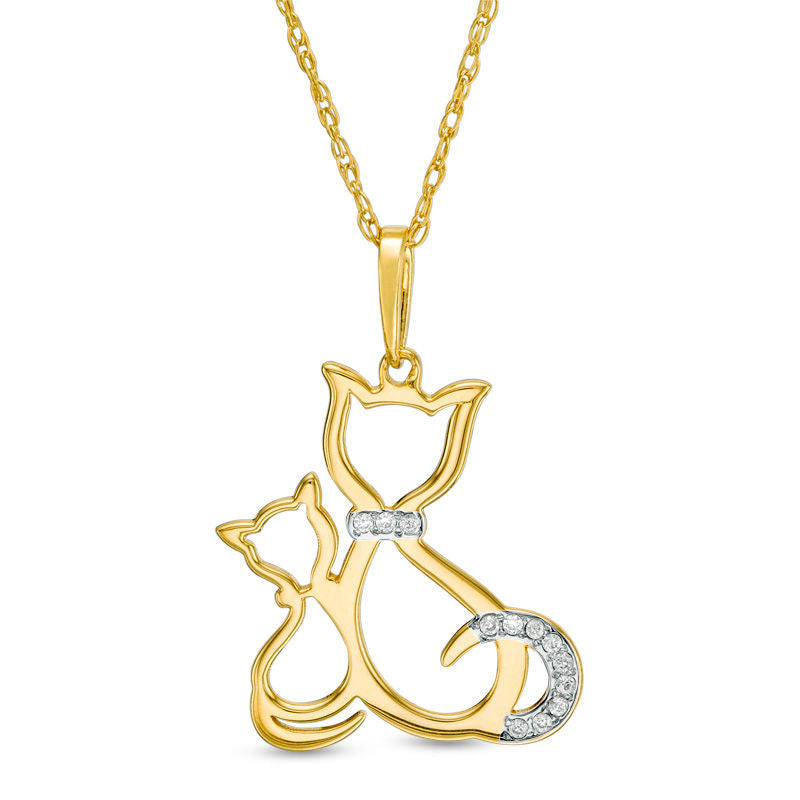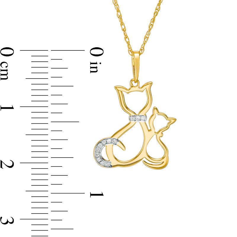 Natural Diamond Accent Laser-Cut Cat and Kitten Pendant in 10K Yellow Gold