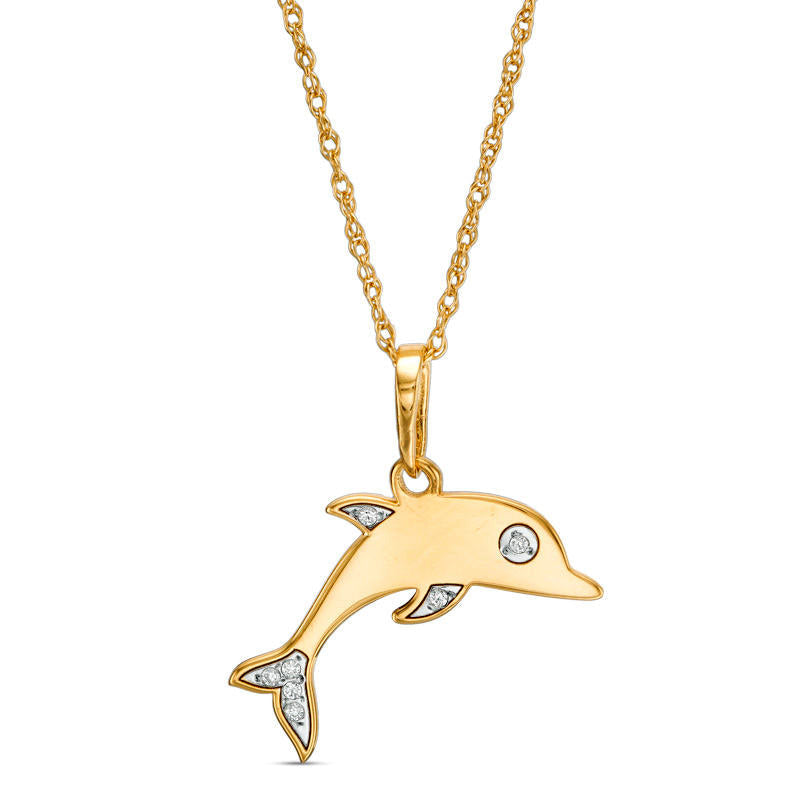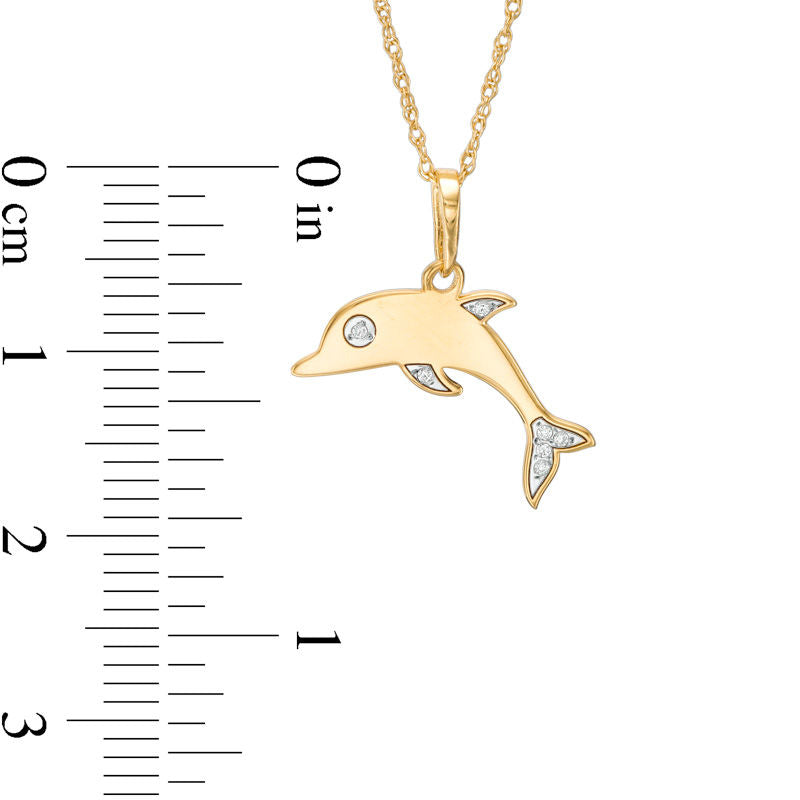 Natural Diamond Accent Laser-Cut Dolphin Pendant in 10K Yellow Gold