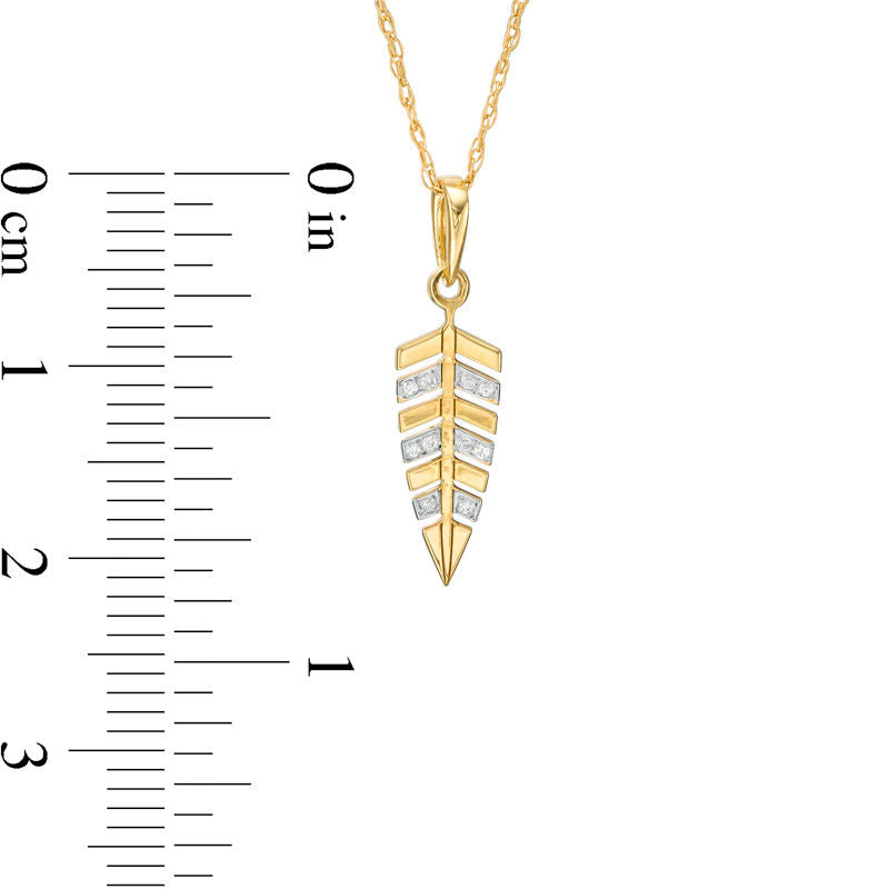 Natural Diamond Accent Laser-Cut Feather Pendant in 10K Yellow Gold