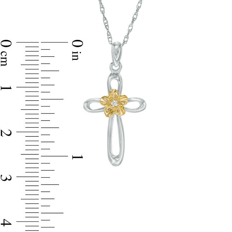 Natural Diamond Accent Looped Cross Flower Pendant in Sterling Silver and 10K Yellow Gold