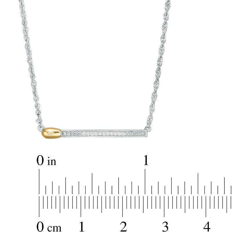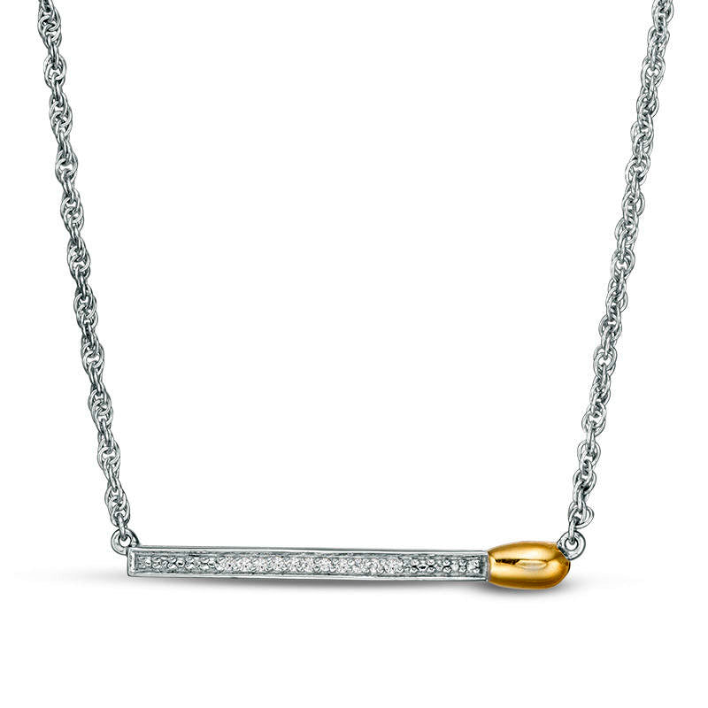 Natural Diamond Accent Matchstick Necklace in Sterling Silver and 10K Yellow Gold